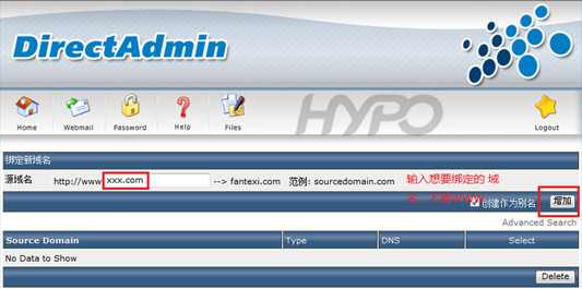 控制面板首页—》站点管理—域名绑定: 如图,添加即可。 如何删除已经绑定的域名?控制面板首页—》站点管理—域名绑定: 如图,点delete即可删除.好IT, 版权所有丨如未注明 , 均为原创丨本网站采用BY-NC-SA协议进行授权 , 转载请注明DirectAdmin:如何绑定新域名! 喜欢 (0)